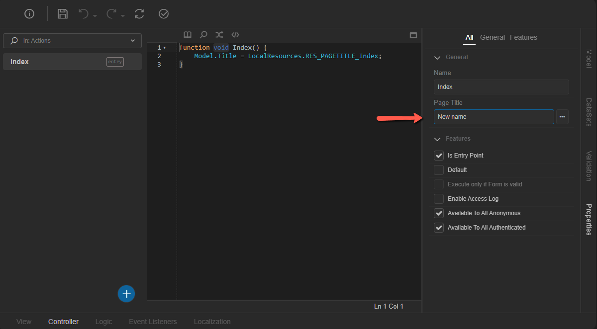 Window title consists of two parts. The first part displays the name of the page title, and the second one the Application name