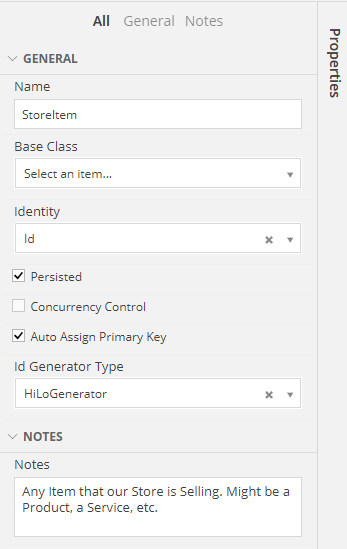 | Id Generator Type | The Type of the Generator to use, to auto-generate the Primary Key. HiLo: an algorithm to rapidly generate Primary Keys without accessing the DataBase. Sequence: traditional algorithm that generates Primary Keys giving them unique, incremented numbers. | On Non-Inherited Classes | On Persisted Classes with an Auto-Assigned Primary Key |