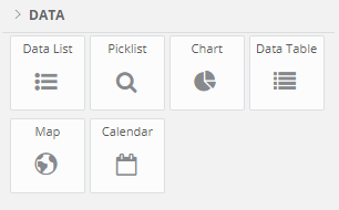 | Data | The Data section contains those components that can hold and present data that are much more complex than a simple string or date. For example, you will find controls that can be used to display collections of data (e.g. Data Table), present statistical information (e.g. Chart), allow you to find a needle in a heystack of data (e.g. Picklist) and more |
