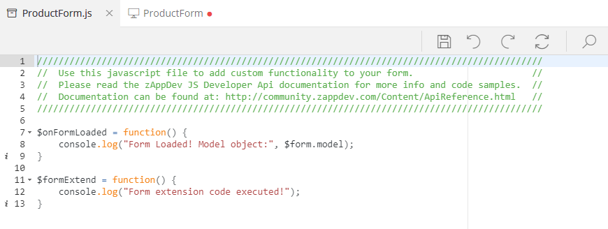 You can get a much deeper understanding of a Form's JavaScript, as well as the functionality that zAppDev exposes for you (to enable you to access any part of your Application via JavaScript), here.