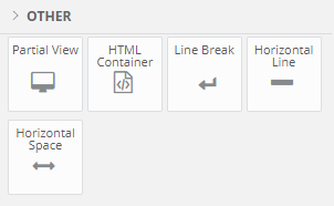 | Other | Anything that does not hold Data but is really helpful to allow you to reach a tailor-made View is stored in the Other tab. Whenever you need to style your View with some lines or spaces or need more powerful containers that can centralize your Views or extend zAppDev's capabilities to the maximum, you can select and use some of these components | Click here | |