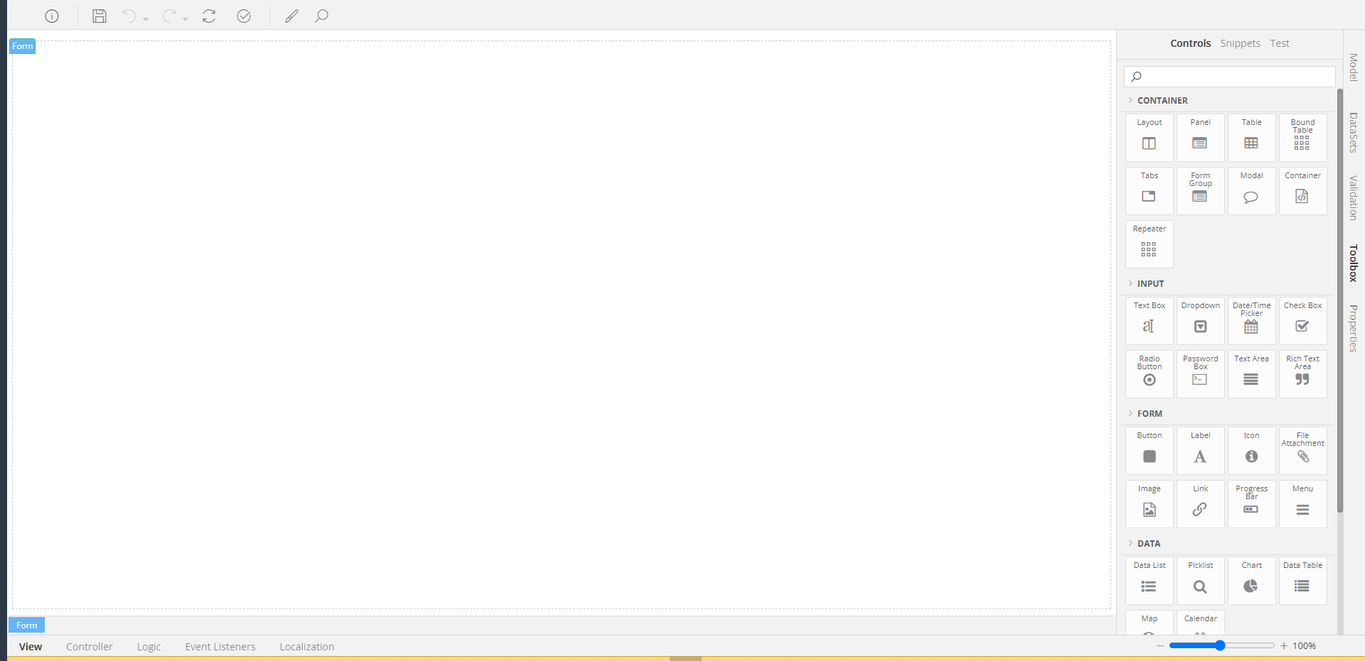 - The View Editor: the container of anything that the end user will be able to see and act on