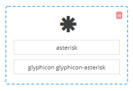 To edit an icon, click on its box and notice how it is switches to edit mode, meaning that Name and Css Classes fields become editable.