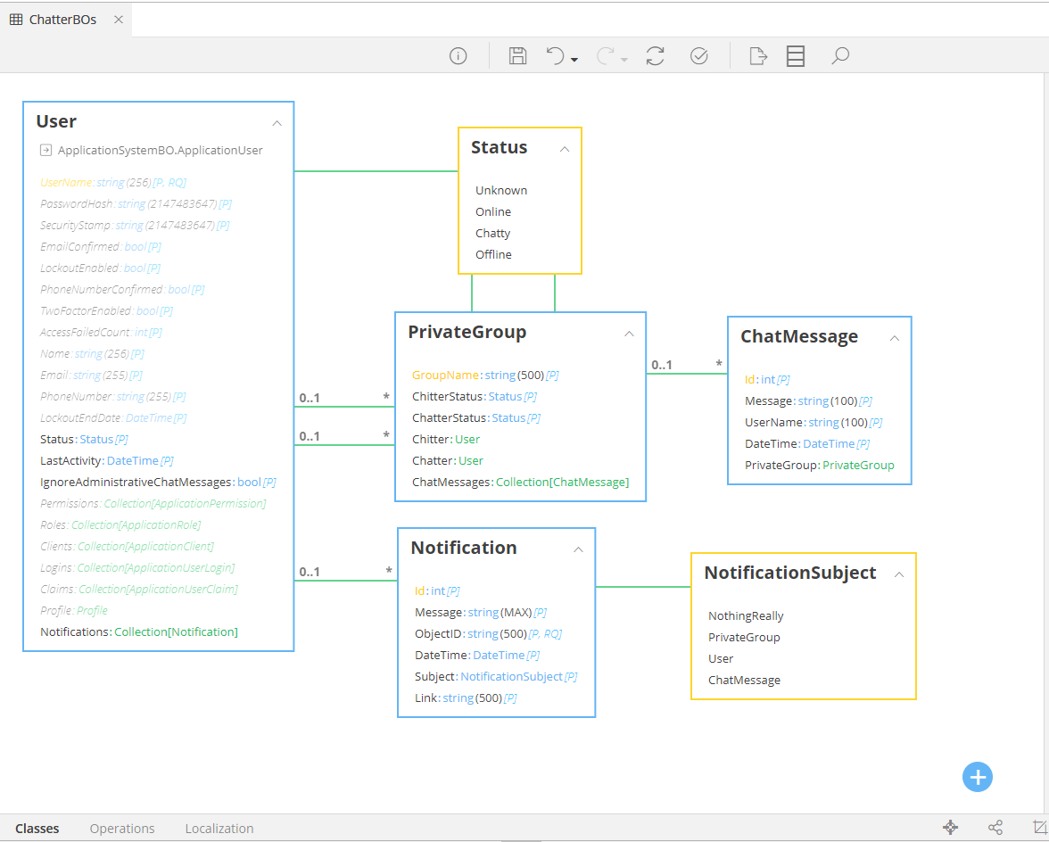 ChatMessages: Collection[ChatMessage]property that will hold all the messages that have been sent to the Public Chat. At this point the Model should look like this: