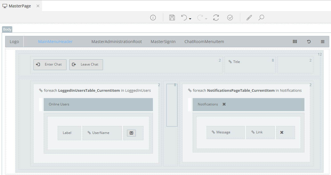 - Add another 12-column Layout onto your Form, named NotInPublicChatRoomLayout (you'll understand why, soon enough)