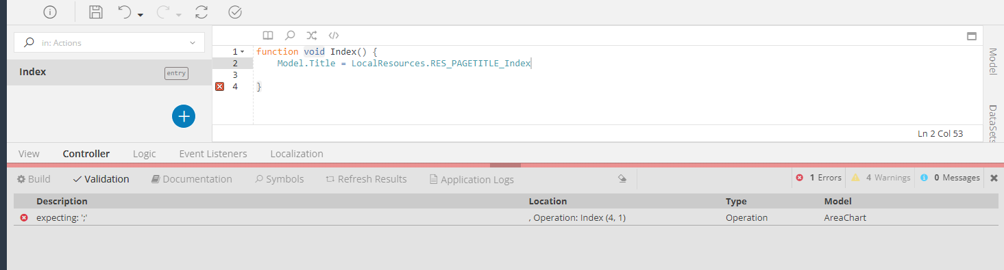If you double-click on an Error or Warning line under a line concerning a Model within your Application, you will be instantly navigated to the position displayed.