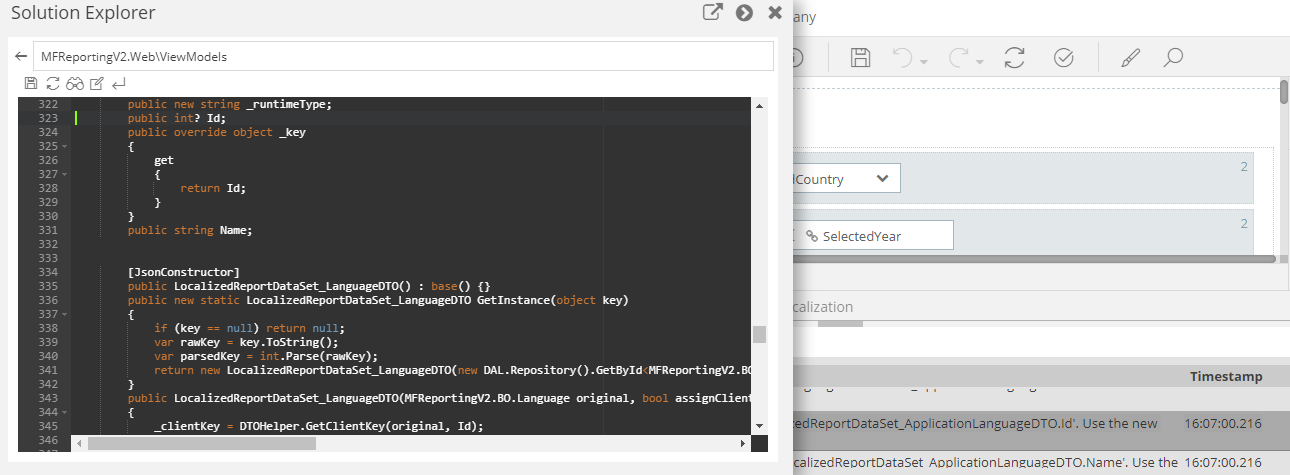 Now, in the case of a Build, a double-click on an Error or a Warning concerning the generated code, will open the file in the Solution Explorer, where you can view the exact line (and the rest of the code) that was found erroneous: